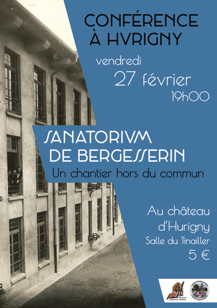 À l’invitation de l’association Sauvegarde du patrimoine d’Hurigny et de l’Association des anciens combattants d’Hurigny venez découvrir l’histoire de la construction du sanatorium de Bergesserin, édifice emblématique de la lutte contre la tuberculose en Saône-et-Loire.